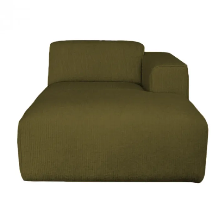 De 2-zits bank bestaat uit losse modules: een hoekstuk en een lounge element. De modules zijn bekleed met de stof Rackham in de kleur groen.