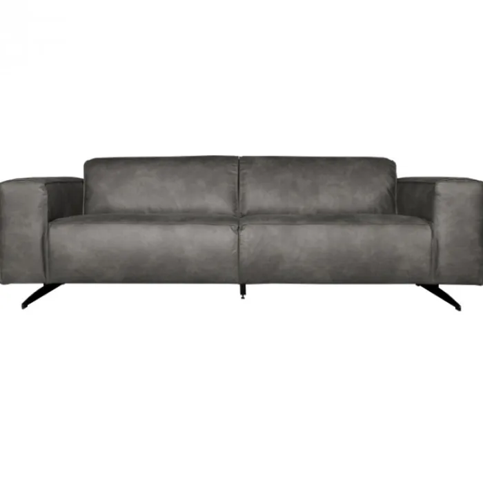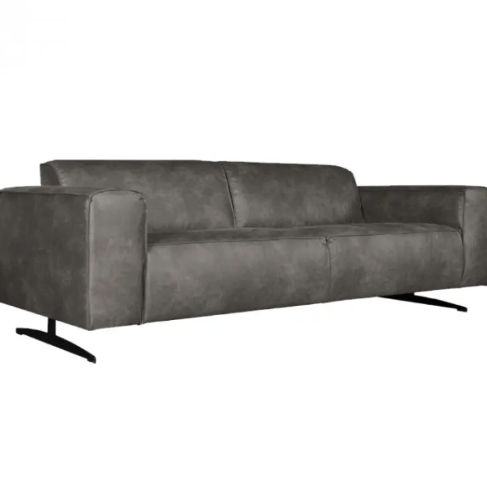 Deze stoere 3 zitsbank heeft met zijn diepe zit met bonellvering en lage rugleuning een moderne uitstraling. De Lambada heeft vaste kussens met opstaande naden en is uitgevoerd in leer Hunter grijs 104. De unieke brede poten zijn van zwart metaal. Dus houd je van een stevige zitting en een stoere industriële uitstraling, dan is dit jouw bank!