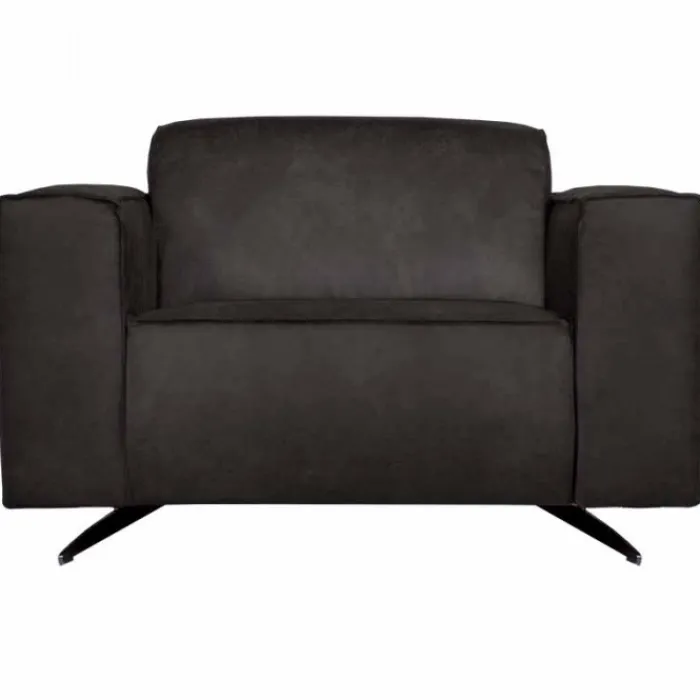 Deze stoere fauteuil heeft met zijn diepe zit met bonellvering en lage rugleuning een moderne uitstraling. De lambada heeft een vast kussen met opstaande naden en is uitgevoerd in de antraciet kleurige recycle leersoort Colorado. De unieke brede maar dunne poten zijn van zwart metaal. Houd je van een stevige zitting en een stoere industriële uitstraling, dan is dit jouw fauteuil!