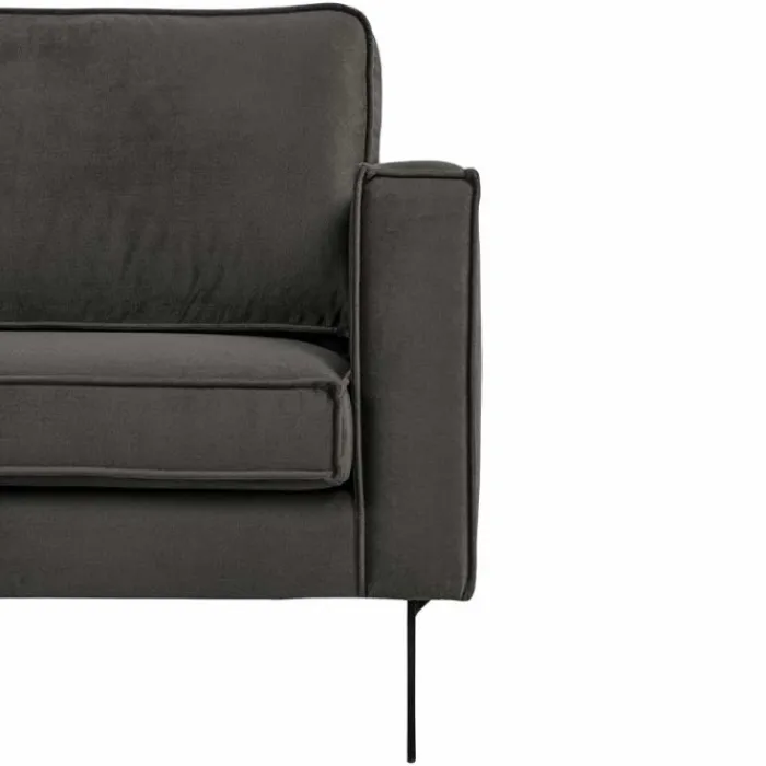 De hoekbank / loungebank Stuart is een stoere en robuuste loungezit met een rechte armleuning. Deze ruime bank is geschikt voor vrijwel ieder interieur en wordt geleverd met unieke industriële metalen sleepoten. De sleepoten zijn zwart van kleur. De bank is uitgevoerd in de stof velours Adore donkergrijs. Dit is een zachte stof met een rijke uitstraling. Door de velours stof krijgt de hoekbank een zeer opvallende en rijke uitstraling. Daardoor is deze bank uitermate geschikt voor ieder interieur.