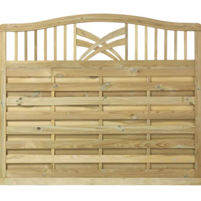 Plus tuinscherm toog vuren groen geïmpregneerd uit de serie Rondo. De afmetingen van dit scherm zijn 180 x 142/150 cm (b x h). Met doorkijkgedeelte. RVS geschroefd.