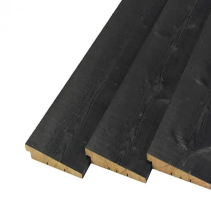 Trendhout zweeds rabat Douglas zwart geïmpregneerd 1,2/2,5 x 19,5 cm gezaagd. Deze plank is gezaagd, dat wil zeggen dat de oppervlakte ruw is en splinters bevat. Zichtzijde is fijnbezaagd, werkende breedte is 18 cm.