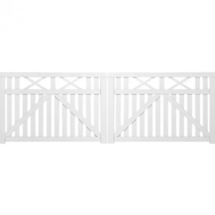Plus dubbele poort recht vuren geimpregneerd en wit afgelakt uit de serie Vinesse. De afmetingen van deze poort zijn 300 x 98 cm (b x h) en de dikte is 4,4 cm. RVS geschroefd.