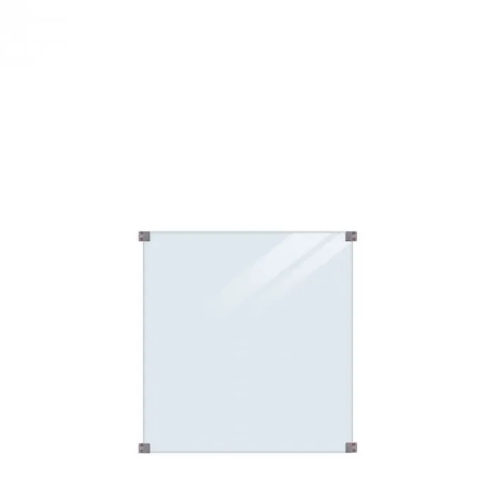 Het glas bestaat uit 2 glaslagen. Dit zit rond een folie gelijmd. Als het glas breekt blijven de scherven plakken aan het folie. De glasplaat wordt geleverd inclusief 4 glasklemmen.