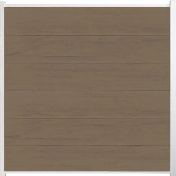 Schutting composiet co-extrusie Como vergrijsd bruin met wit aluminium kader (180 x 180 cm). Deze schutting wordt geleverd als een zelfbouw pakket waarmee je zelf een unieke schutting kunt maken.