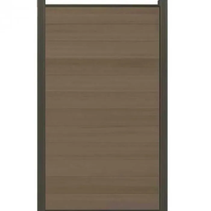 Schutting composiet co-extrusie Como vergrijsd bruin met antraciet aluminium kader (90 x 180 cm). Deze schutting wordt geleverd als een zelfbouw pakket waarmee je zelf een unieke schutting kunt maken.