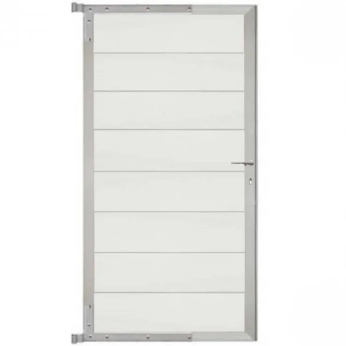 C-Wood zelfbouw tuindeur aluminium blank frame Modular – composiet co-ex wit. Afmeting 90 x 180 cm. De hoogte van de tuindeur is enkele centimeters lager dan de opgegeven 180 cm. De tuindeur wordt geleverd inclusief deurbeslag.