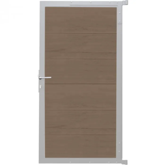 C-Wood tuindeur composiet Mix & Match frame aluminium blank (90 x 180 cm). De netto hoogte van deze tuindeur is enkele centimeters lager dan de opgegeven 180 cm. Deze komt uit op 175 cm hoog. De deur wordt geleverd inclusief deurbeslag.
