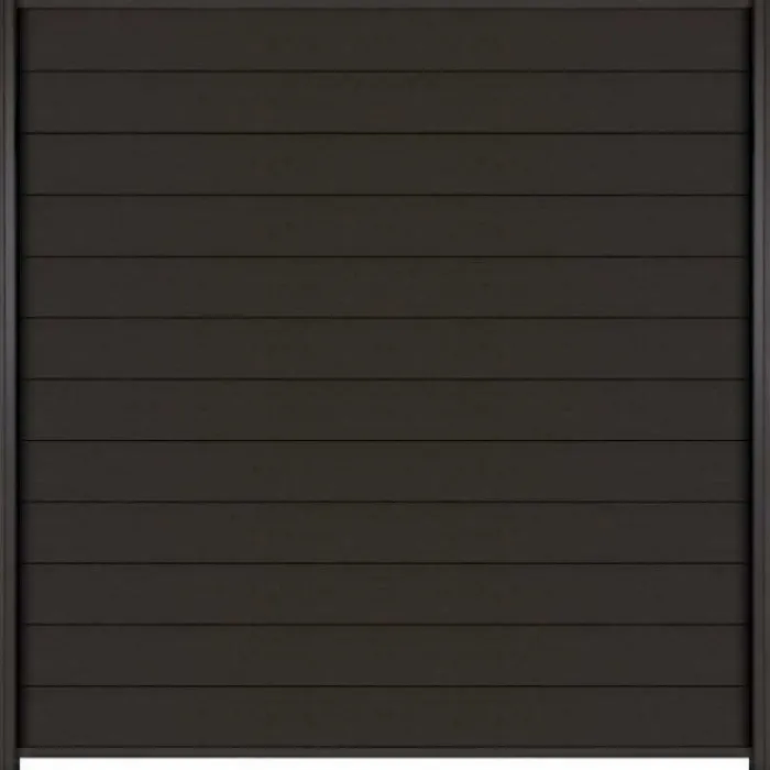 C-Wood zelfbouw schutting composiet Mix & Match antraciet met antraciet aluminium accessoires. Afmeting is 180 x 180 cm. De schuttingdelen schuif je van bovenaf tussen de C-Wood Modular / Mix & Match palen. De volgorde van de verschillende planken kan je zelf bepalen. Je begint onder en eindigt bovenop. De netto hoogte van deze schutting is enkele centimeters lager dan de opgegeven 180 cm.