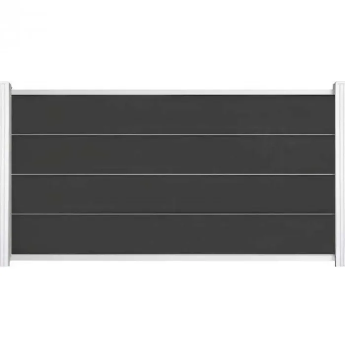 C-Wood zelfbouw schutting composiet Modular antraciet met wit aluminium accessoires. Geschikt om een scherm te maken van 97 cm hoog en maximaal 180 cm breed. De breedte is eenvoudig in te korten.