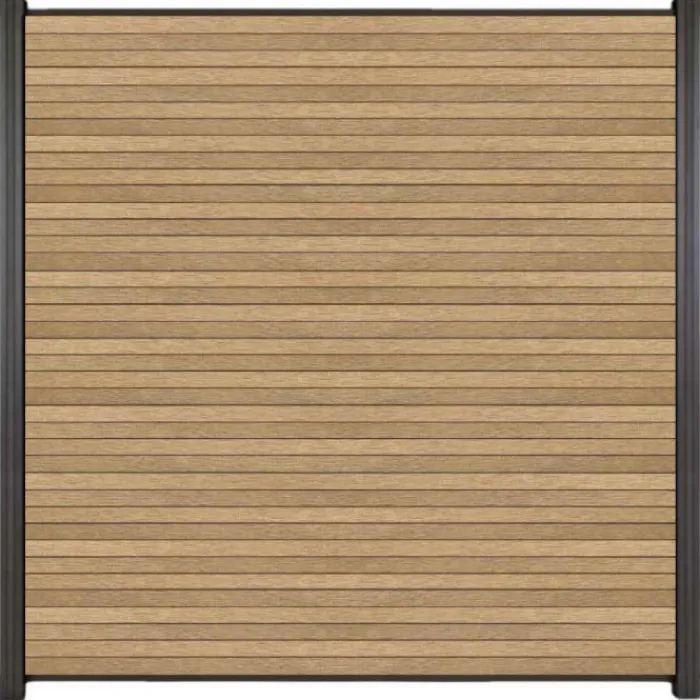 C-Wood zelfbouw schutting composiet Rhombus Triple teak met antraciet aluminium accessoires. Geschikt om een scherm te maken van 200 cm hoog en maximaal 180 cm breed. De breedte is eenvoudig in te korten.