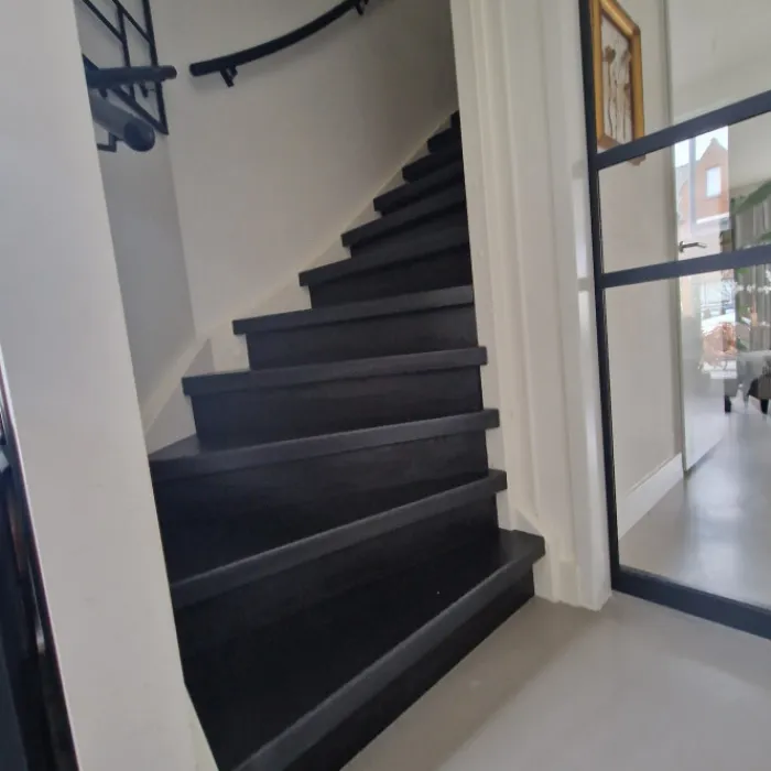 Voor de rechte treden van de trap zijn er overzettreden beschikbaar van 100 x 30 cm. Voor de grotere traptreden in huis waar een draai in zit, zijn er overzettreden van 130 x 38 cm beschikbaar.