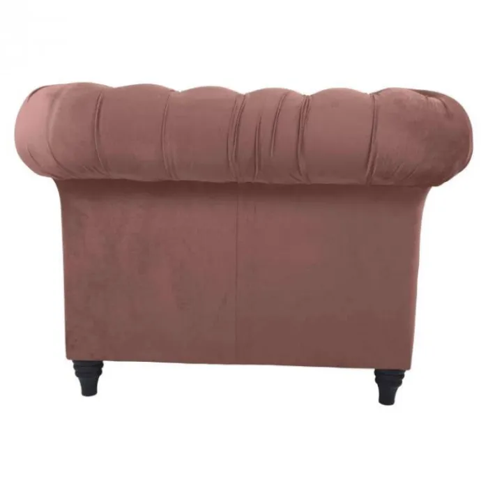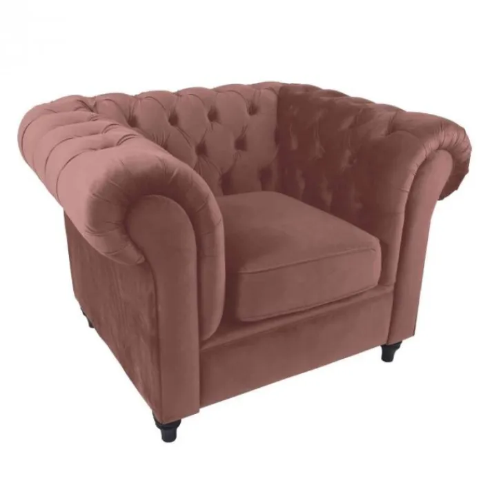 De fauteuil Giethoorn is een klassieke fauteuil. Deze fauteuil is gedecoreerd met diepliggende knopen in de rug en armleuning. De Giethoorn is voorzien van één los zitkussen. Het zitcomfort van deze fauteuil is stevig. Uitgevoerd in de stof Kronos fluweel roze.