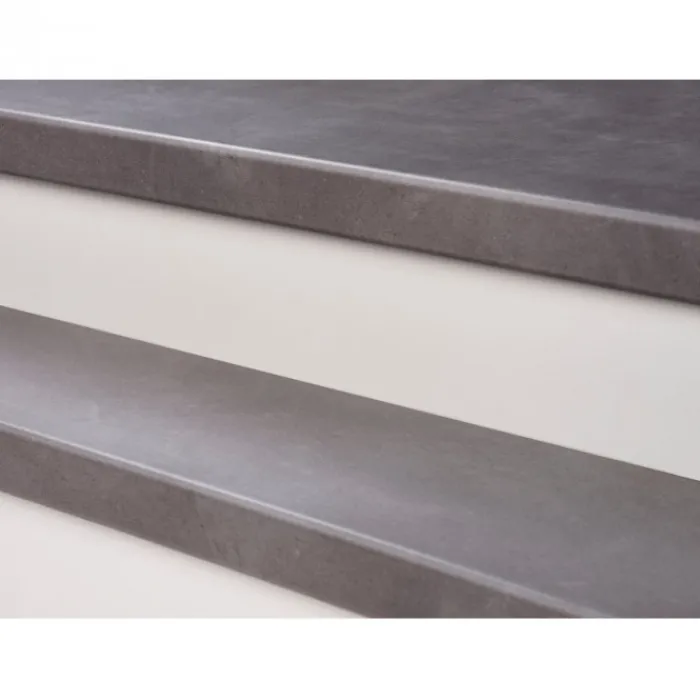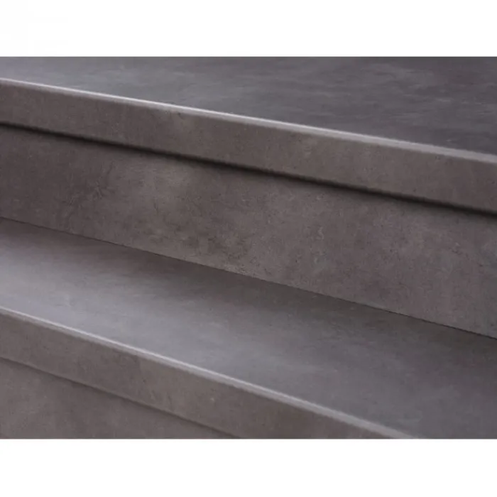 Stepwood overzettrede PVC toplaag. Dit zijn dubbele treden waaruit je 2 enkele treden kunt zagen. Totale dikte 8 mm, dikte neuslijst 18 mm en hoogte neuslijst 70 mm.
