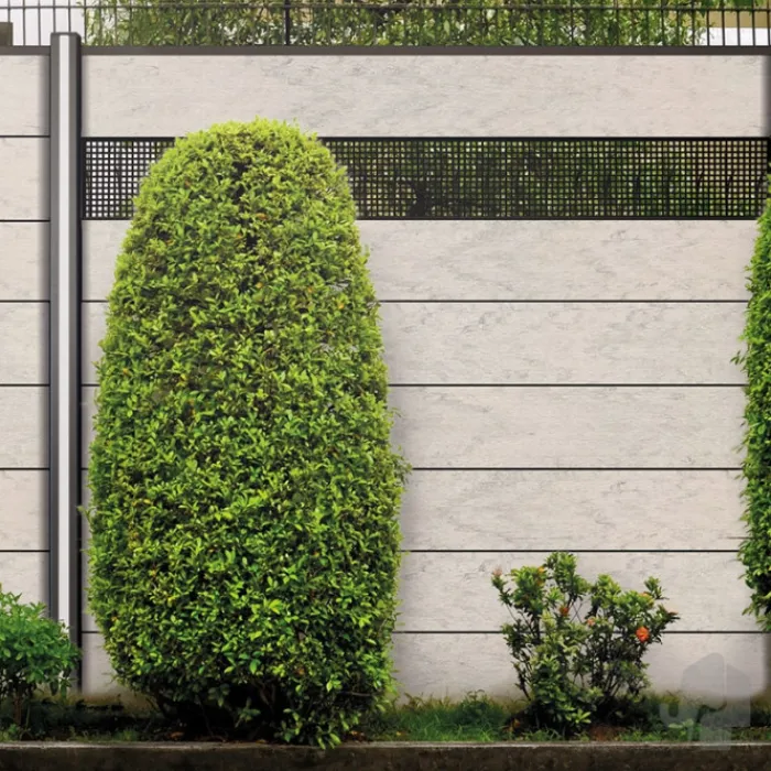 Met het modulaire systeem van Elephant kun je naar eigen wens je schutting samenstellen. Zo kun je composiet lamellen afwisselen met een aluminium rooster of hardglas en heb je altijd een uniek scherm in de tuin. Daarnaast heeft het ook nog eens een uitstekende levensduur. Gebruik de modulaire palen en eindprofielen (boven- en onderregel) om de schutting af te maken. Om de schutting helemaal in de spotlight te zetten, kun je als laatste unieke detail led-verlichting op zonne-energie op de palen bevestigen.
