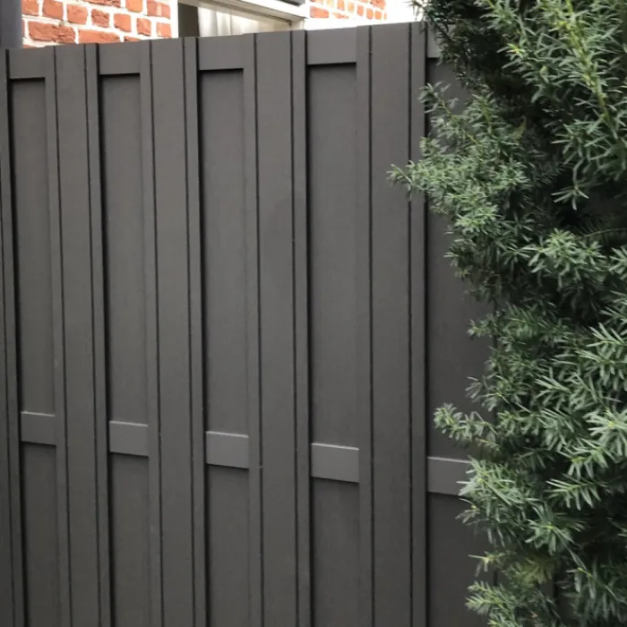 Hot Elephant Schutting composiet Design donkerbruin met blank aluminium frame (180 x 180 cm)