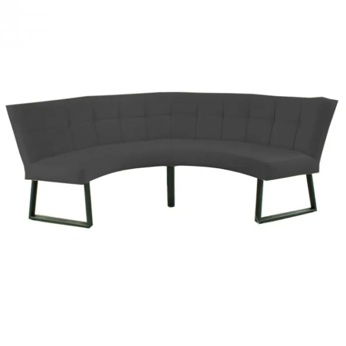 HomingXL ronde eetkamerbank geschikt voor een ronde tafel met een diameter van 150 cm. Deze stoere halfronde eetkamerbank Amsterdam is gestoffeerd met de prachtige Element velours stof in de kleur antraciet. De bank is uitgevoerd met zwarte metalen poten. Deze eetkamerbank heeft een stoere uitstraling en is zowel geschikt voor een industrieel als een modern interieur.