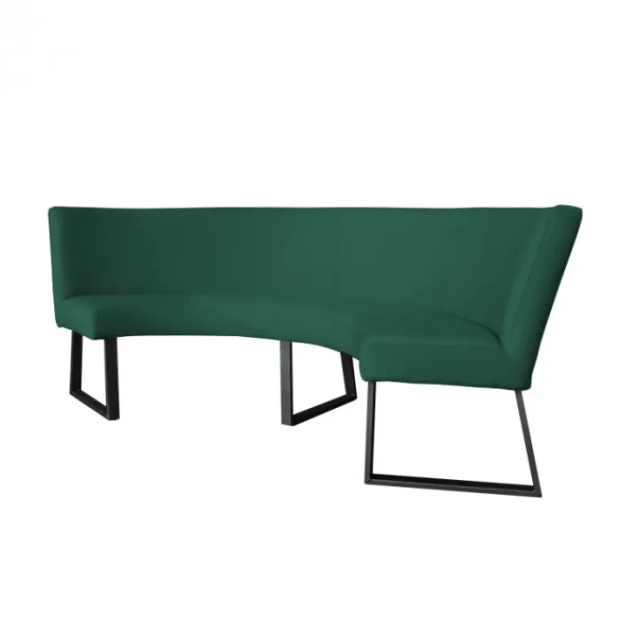 HomingXL ronde eetkamerbank geschikt voor een ronde tafel met een diameter van 150 cm. Deze stoere halfronde eetkamerbank Rotterdam is gestoffeerd met de prachtige Element velours stof in de kleur bosgroen. De bank is uitgevoerd met zwarte metalen poten. Deze eetkamerbank heeft een stoere uitstraling en is zowel geschikt voor een industrieel als een modern interieur.