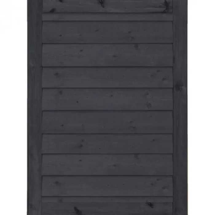 jouw wensen en behoeften. Wil je een moderne uitstraling? Kies dan voor de kleur zwart. Wil je liever een tuininrichting die landelijk is? Kies dan voor de geïmpregneerde kleur. De tuindeuren bestaan uit horizontale planken gemaakt van noordelijke zachthout. De houten planken zijn geimpregneerd. Hierdoor wordt het hout langdurig beschermd tegen aantasting door weersomstandigheden, bacteriën, insecten en schimmels. Het oppervlak krijgt hierdoor ook een mooi uiterlijk. De zwarte variant is tevens zwart voorgegrond.