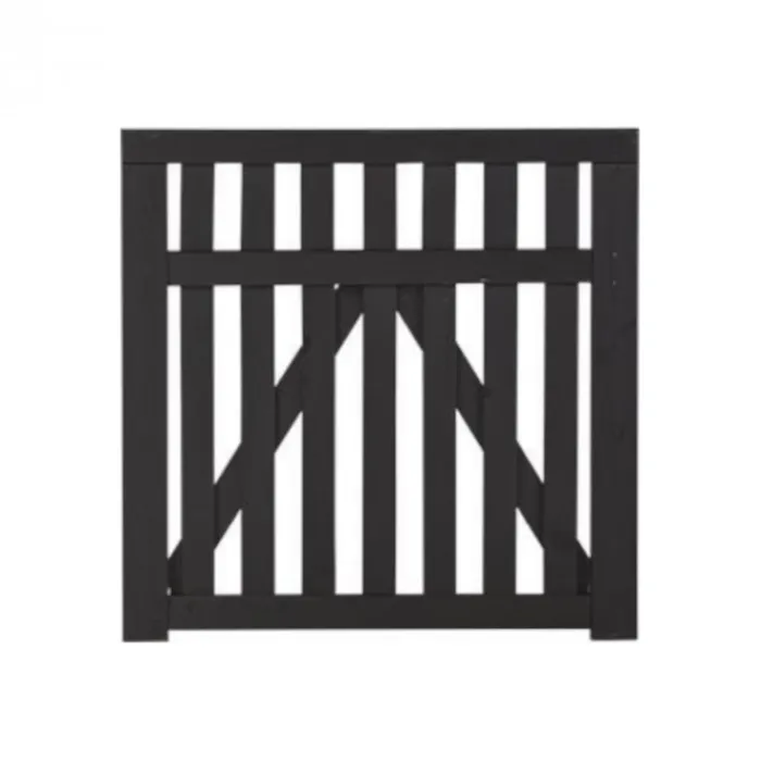 Plus dubbele tuinpoort vuren geimpregneerd en zwart gebeitst uit de serie Country. De poort heeft een totale afmeting van 300 x 98 cm (b x h) en een dikte van 4,4 cm. Ook verkrijgbaar in de kleur wit.