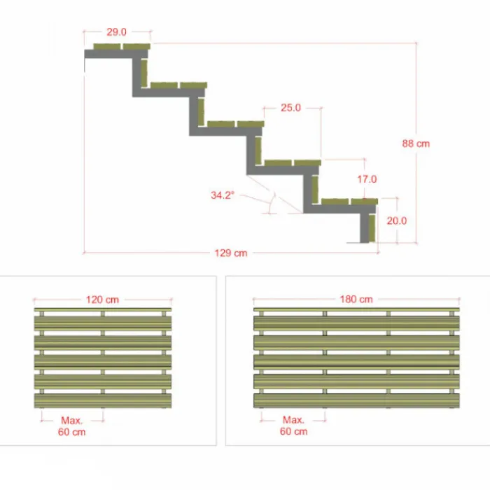 Plus Danmark tuintrap staal 5 treden. Wordt geleverd inclusief houten treden en stootborden. Maak met dit pakket je eigen trap, geschikt voor 5 treden. Exclusief schroeven om de thermisch verzinkt stalen beugels te bevestigen.