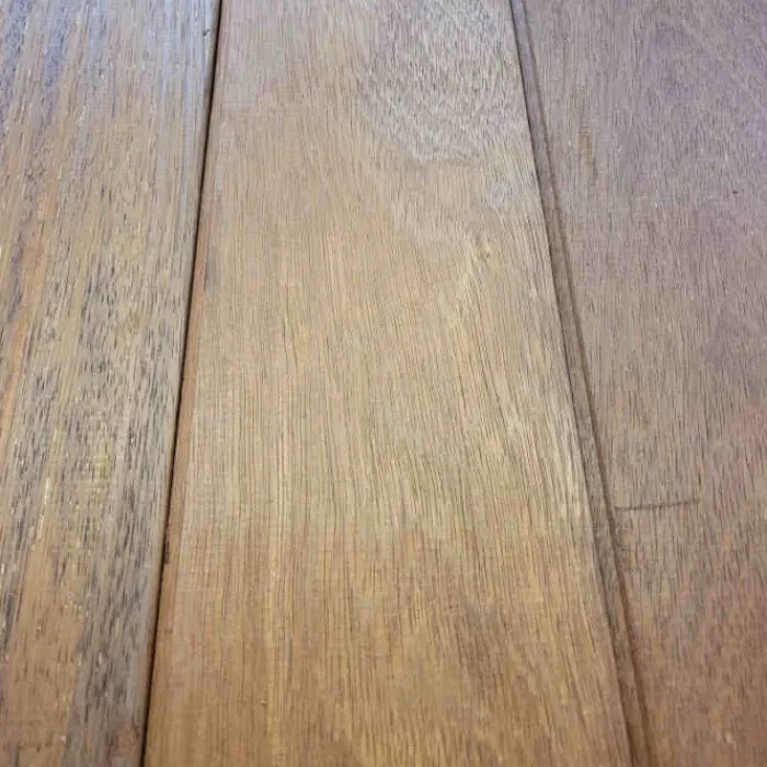 Merbau hout bevat kleurstoffen die oplossen in water, dit wordt ook wel “bloeden” genoemd. Je kunt dit verminderen door het hout te behandelen met verdunde ammoniakoplossing (5%).
