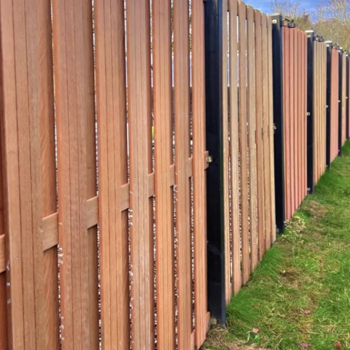 Smaragd Schutting set hardhout keruing Robuust recht 15L v-groef (7,63 meter). Complete set van 4 hardhouten tuinschermen 180 x 180 cm. Schermdikte 4,5 cm. Aangevuld met 5 hardhouten tuinpalen 8,5 x 8,5 cm lengte 250 cm. Hiermee kun je een afscheiding maken van maximaal 7,63 meter breed en 1,80 meter hoog. De schuttingen zijn eenvoudig in de breedte in te korten door de planken eraf te schroeven en de liggers door te zagen.