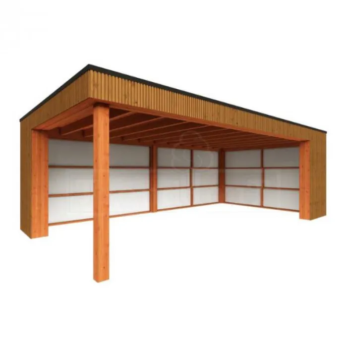 Trendhout buitenverblijf Capri. Dit is het basis model van 4,5 meter diep en beschikbaar in diverse breedte maten. Wil je dit buitenverblijf helemaal naar eigen wens samen stellen klik dan op de knop hierboven en ontwerp je buitenverblijf in de 3D configurator.